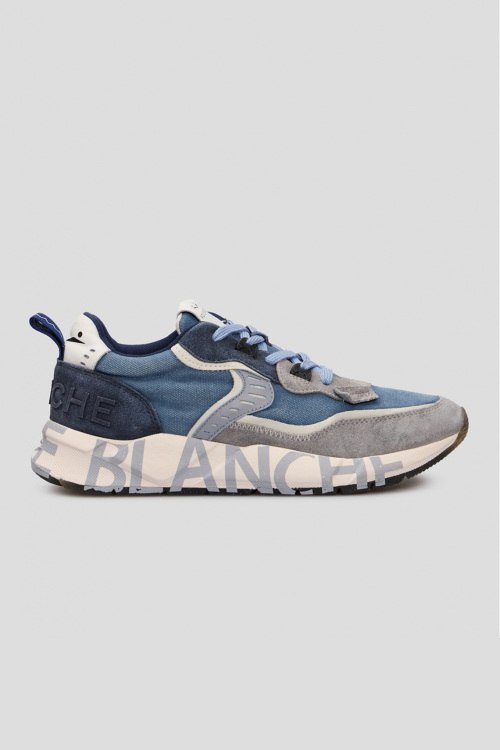 Детали: Мужские серо-синие кроссовки из замши и текстиля Club01 от Voile Blanche (Вуаль Бланш). Комбинация цветов и материалов, нашивка с логотипом на язычке и на пятке, петля для подтягивания, классическая шнуровка, закругленный носок, резиновая подошва с логотипом. Высота подошвы: 4 см