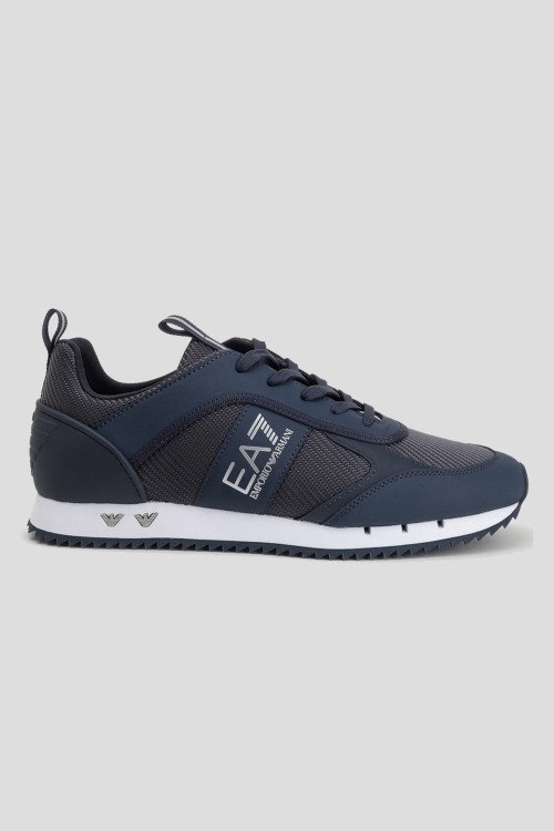 Детали: Мужские темно-синие кроссовки из полиэстера и текстиля от EA7 Emporio Armani (ЕА7 Эмпорио Армани). Закругленный носок, спереди шнуровка, петли для подтягивания, тиснение с логотипом бренда, рельефная подошва