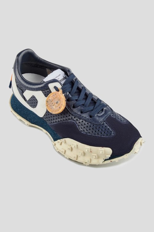 Детали: Мужские темно-синие кроссовки из натуральной кожи от Barracuda (Барракуда). Перфорированный дизайн, закругленный носок, спереди шнуровка, рельефная подошва, контрастные вставки, патч-лого