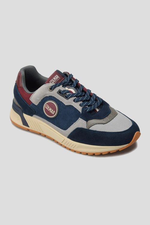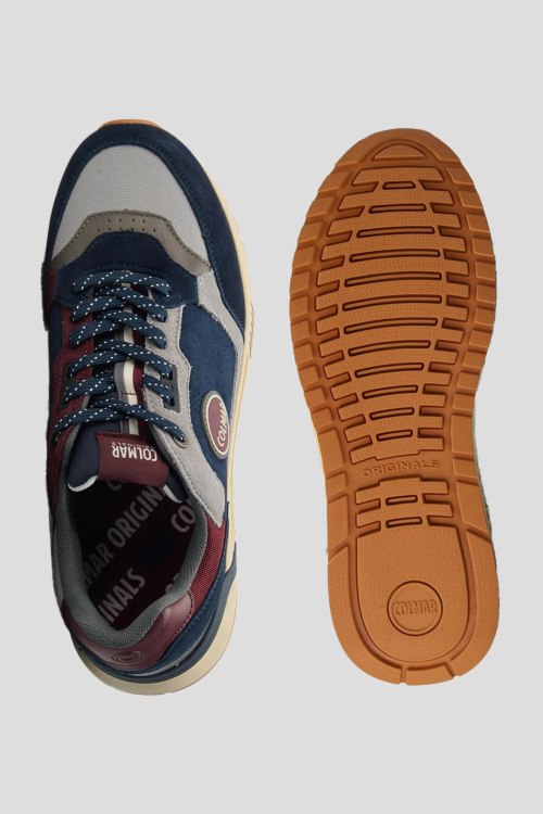Детали: Мужские темно-синие кроссовки из замши и текстиля от Colmar (Колмар). Комбинация цветов и материалов, логотип сбоку и на язычке, классическая шнуровка, закругленный носок, светлая подошва