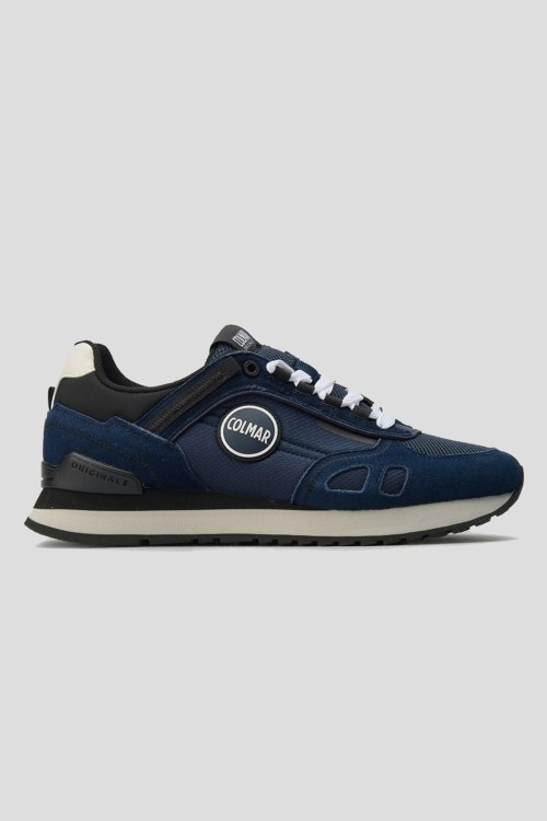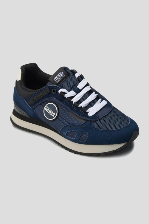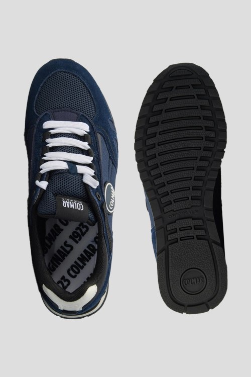 Детали: Мужские темно-синие кроссовки из текстиля и замши от Colmar (Колмар). Комбинация цветов и материалов, логотип сбоку и на язычке, классическая шнуровка, закругленный носок, светлая подошва