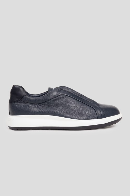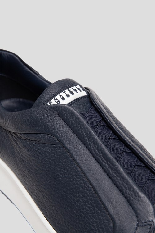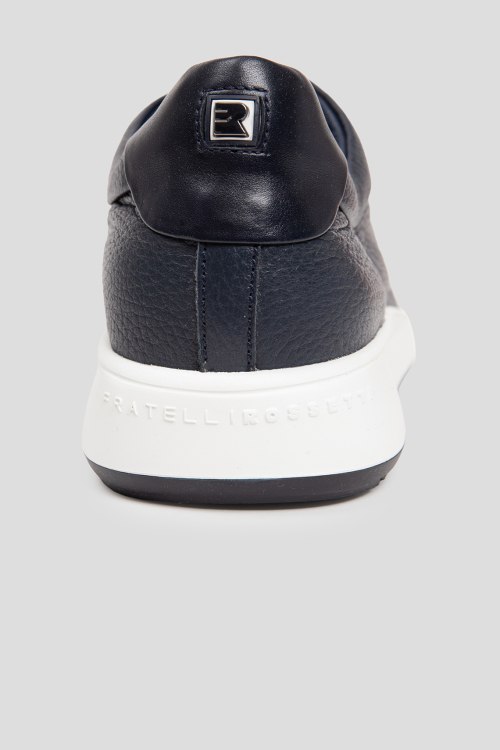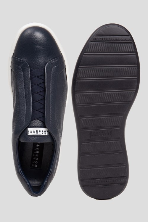 Детали: Мужские темно-синие кожаные кроссовки от Fratelli Rossetti (Фрателли Роззетти). Модель из зернистой кожи, нашивка с логотипом на язычке, без шнуровки, закругленный носок, белая подошва
