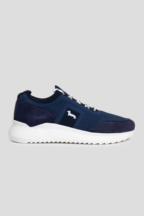 Детали: Мужские темно-синие кроссовки из текстиля от Harmont & Blaine (Хармонт энд Блейн). Закругленный носок, спереди шнуровка, вышитый логотип бренда, белая резиновая подошва