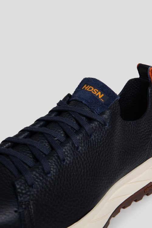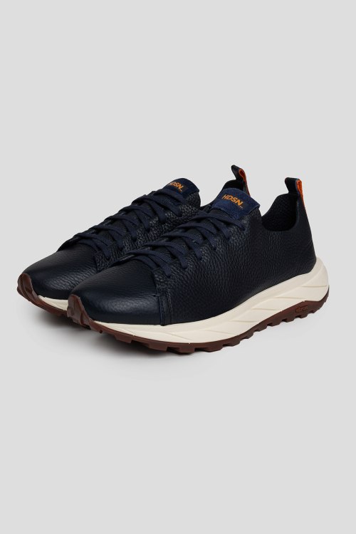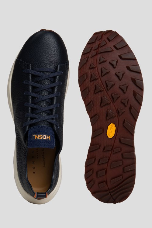 Детали: Мужские темно-синие кроссовки из натуральной кожи от Henderson Baracco (Хендерсон Баракко). Закругленный носок, спереди классическая шнуровка, патч-лого, петля для подтягивания, рельефная подошва