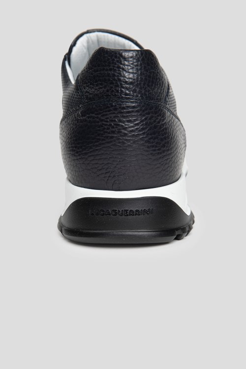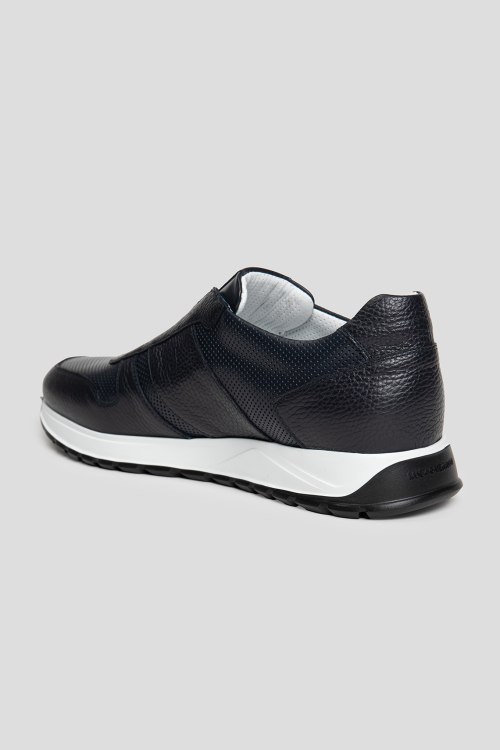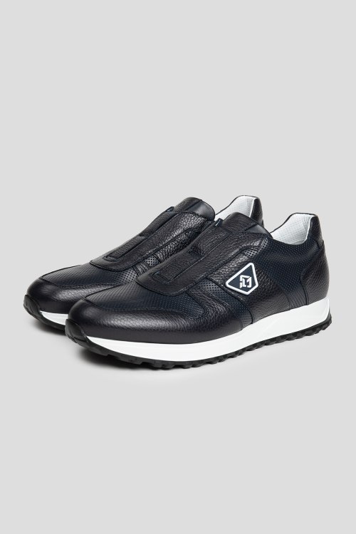 Детали: Мужские темно-синие кроссовки из натуральной кожи от Luca Guerrini (Лука Гуерини). Закругленный носок, спереди эластичная вставка, патч-лого, перфорированные вставки, рельефная подошва, кожаная стелька с логотипом бренда