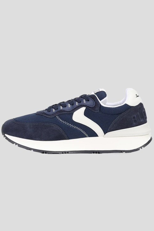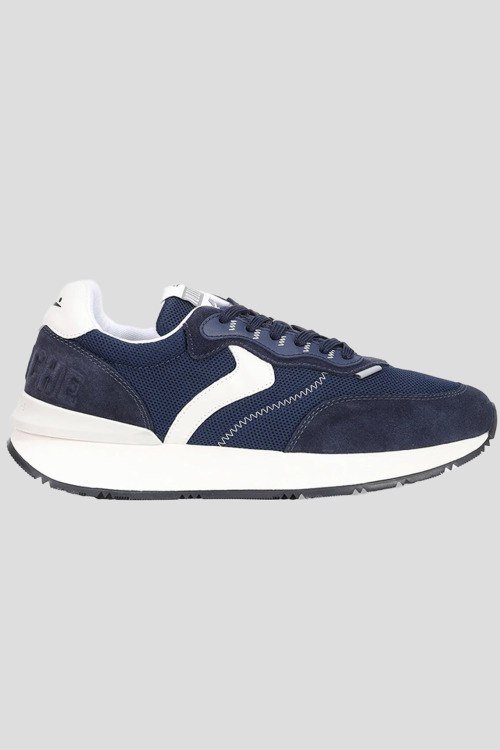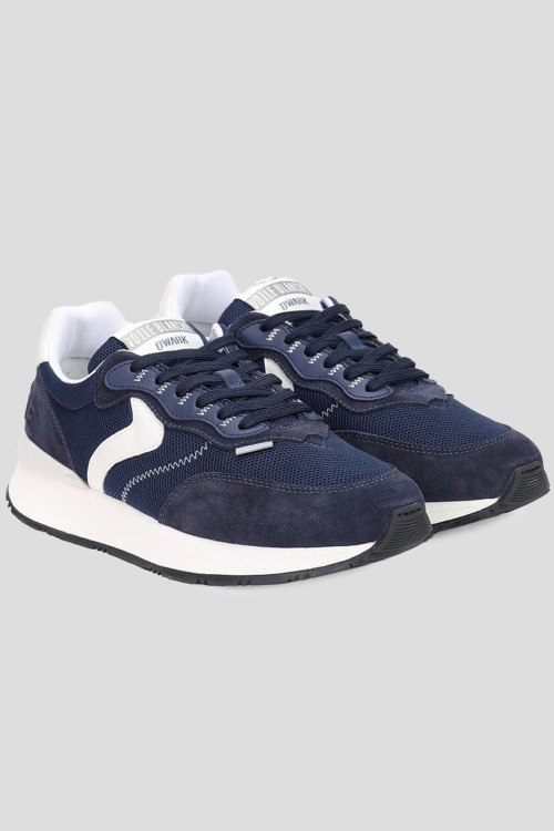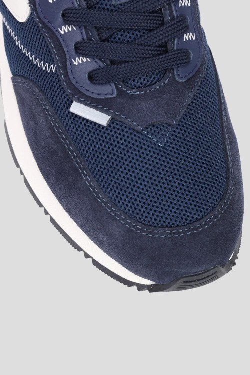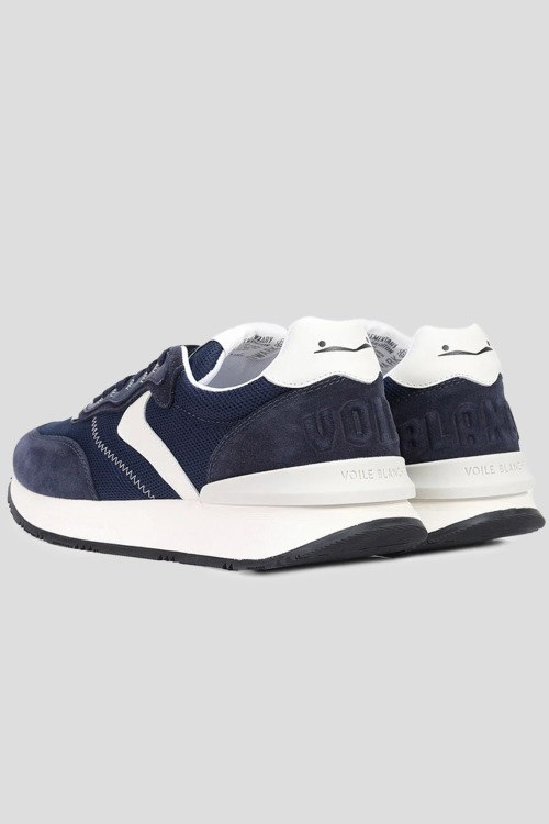 Детали: Мужские темно-синие кроссовки из замши и текстиля от Voile Blanche (Вуаль Бланш). Комбинация материалов, логотип на язычке и на пятке, классическая шнуровка, закругленный носок, белая подошва