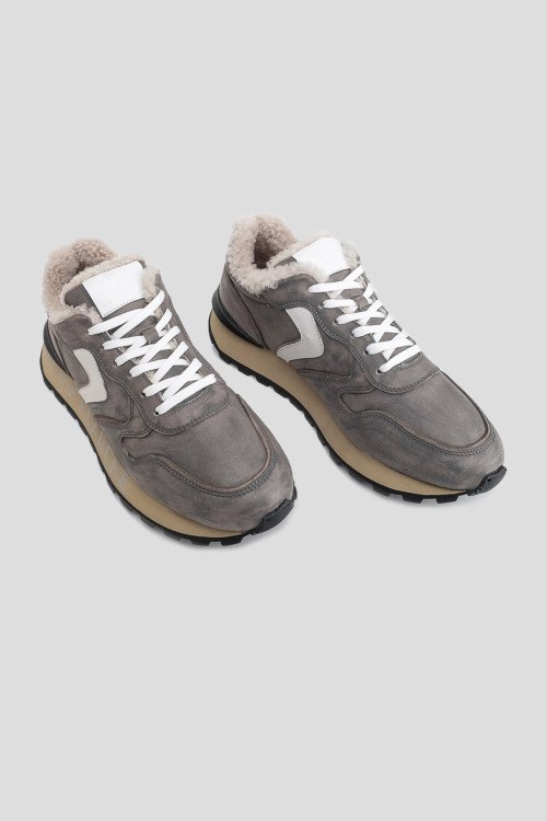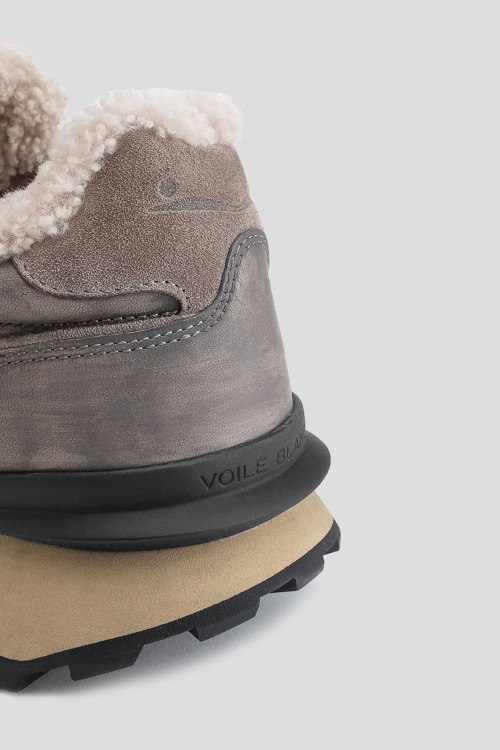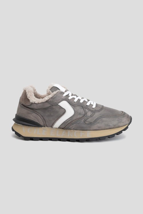 Детали: Женские темно-бежевые кроссовки из натуральной замши от Voile Blanche (Вуаль Бланш). Закругленный носок, спереди шнуровка, патч-лого, рельефная подошва, модель утепленная мехом