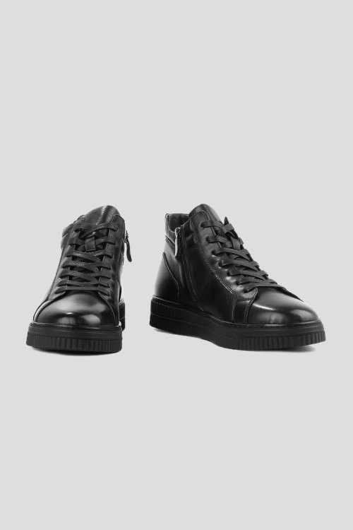 Детали: Мужские черные кожаные хайтопы на байке от Arzoni Bazalini (Арзони Базалини). Гладкая и зернистая текстура, классическая шнуровка, застежка-молния сбоку, закругленный носок. Замеры: длина стельки: размер 39 (26 см), 40 (26,5 см), 41 (27 см), 42 (27,5 см), 43 (28 см), 44 (28,5 см), 45 (29 см)