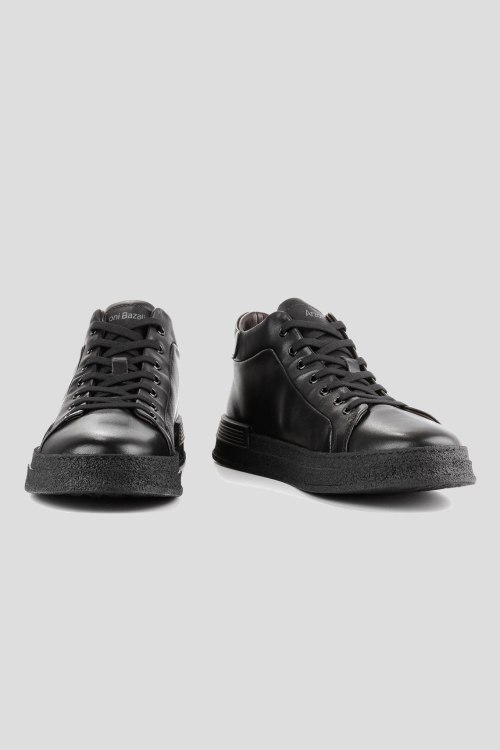 Мужские черные кожаные хайтопы от Arzoni Bazalini (Арзони Базалини). Принт с логотипом на язычке, классическая шнуровка, закругленный носок. Внутри утеплены натуральной овчиной, а также меховая стелька. Замеры: длина стельки: размер 39 (26 см), длина стельки: размер 40 (26.5 см), длина стельки: размер 41 (27 см), длина стельки: размер 42 (27.5 см), длина стельки: размер 43 (28 см), длина стельки: размер 44 (28.5 см), длина стельки: размер 45 (29 см)