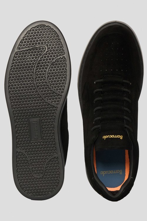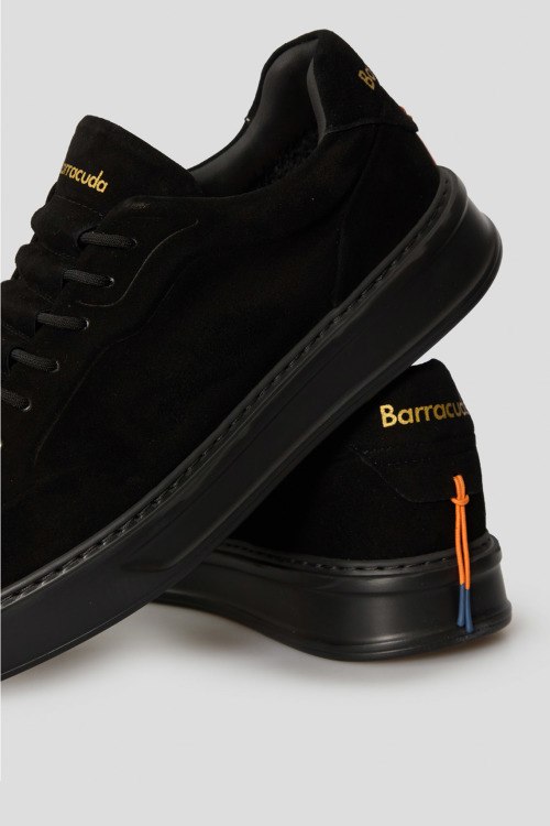 Детали: Мужские черные замшевые кеды на меху от Barracuda (Барракуда). Логотип на язычке и на пятке, классическая шнуровка, закругленный носок, внутри на меху. Высота подошвы: 4 см