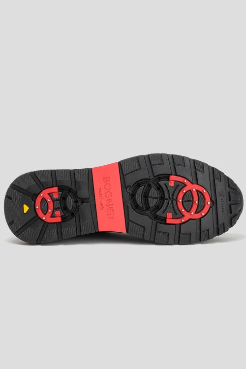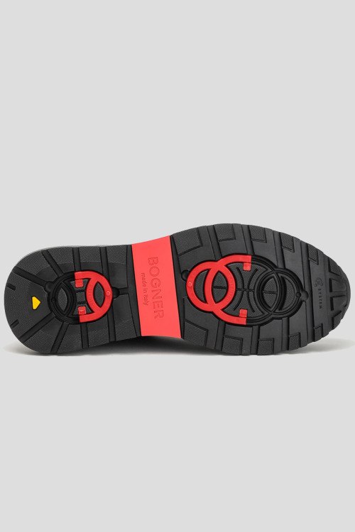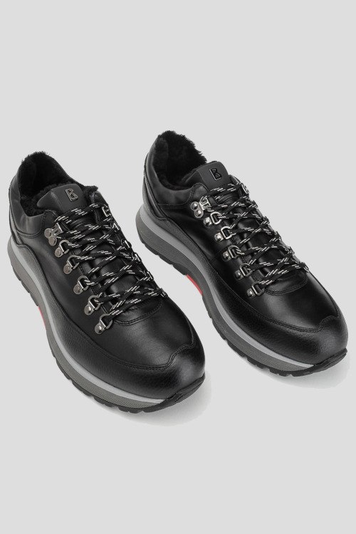 Детали: Мужские черные кроссовки Trondheim из натуральной кожи от Bogner (Богнер). Закругленный носок, спереди классическая шнуровка с металлической фурнитурой, логотип бренда, модель утепленная мехом, тракторная подошва с антискользящими вставками
