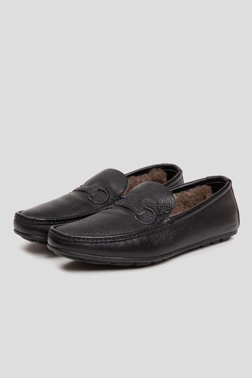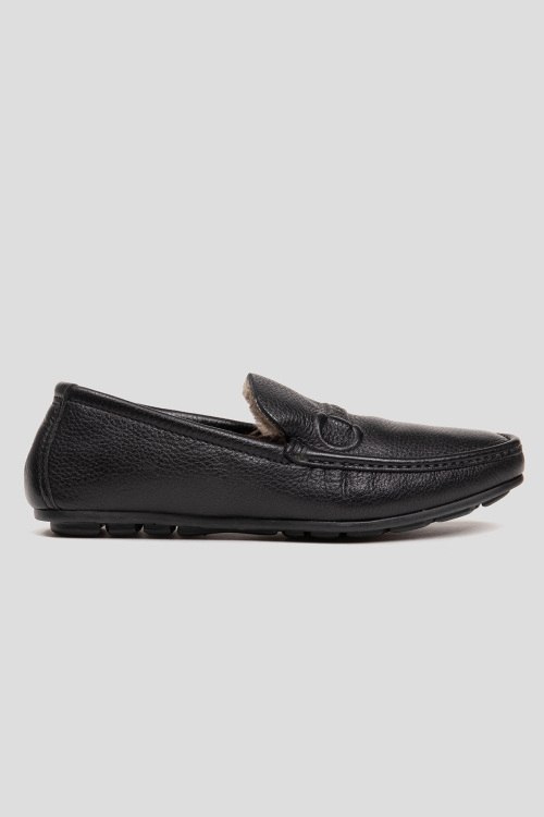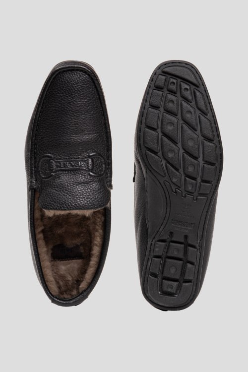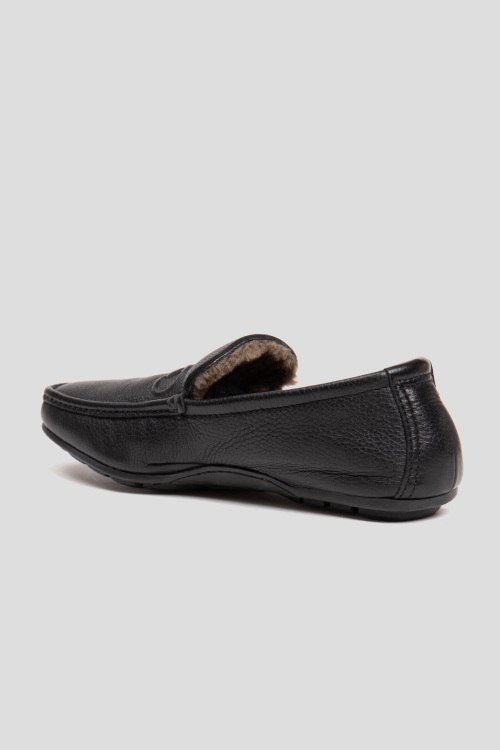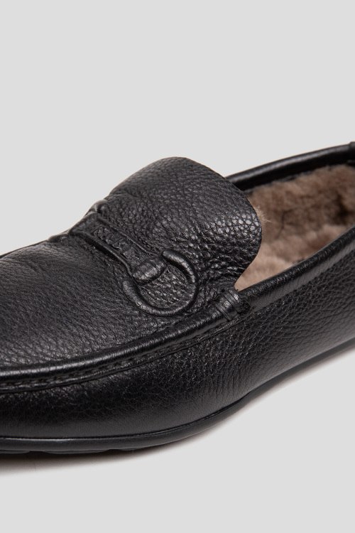 Детали: Мужские черные кожаные мокасины на меху от Fabi (Фаби). Модель из зернистой кожи, тиснение логотипа, закругленный носок, внутри на меху