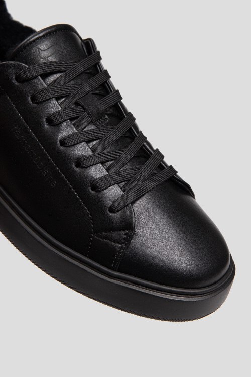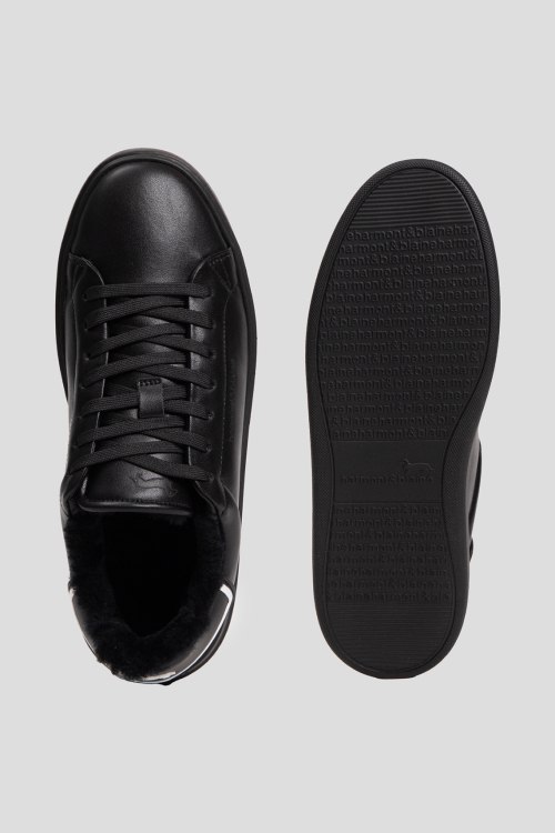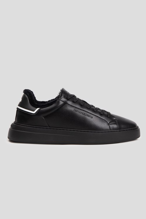 Детали: Мужские черные кожаные кеды на меху от Harmont & Blaine (Хармонт энд Блейн). Модель из гладкой кожи, логотип сбоку, на пятке и на язычке, классическая шнуровка, закругленный носок, внутри на меху