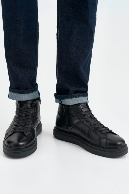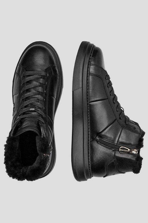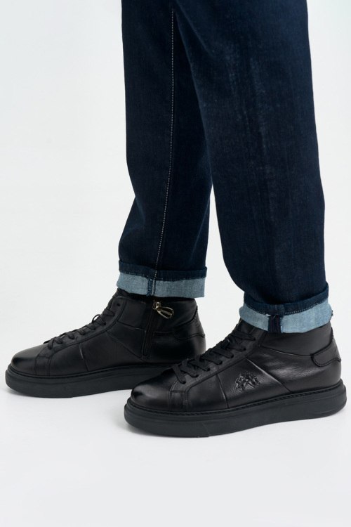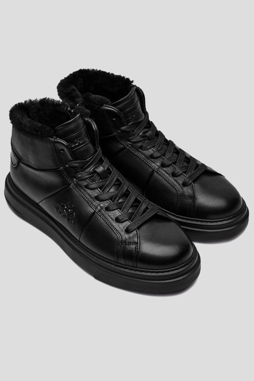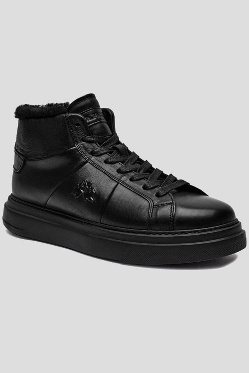 Детали: Мужские черные кожаные кеды на меху от La Martina (Ла Мартина). Модель из гладкой кожи, логотип сбоку и на язычке, классическая шнуровка, закругленный носок, внутри на меху