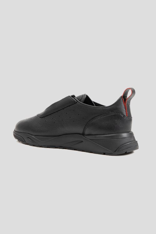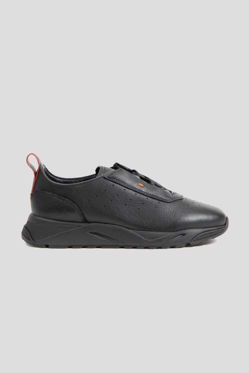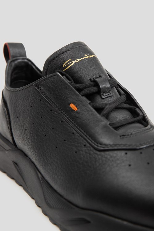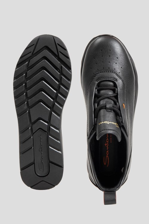 Детали: Мужские черные кроссовки из натуральной кожи от Santoni (Сантони). Закругленный носок, спереди классическая шнуровка, модель утепленная мехом, петля для подтягивания, перфорация, логотип бренда