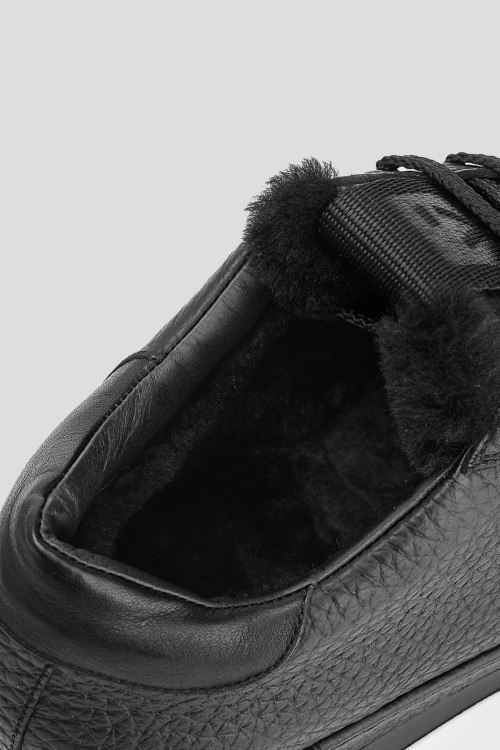 Детали: Мужские черные кожаные кеды на меху от Vic Matie (Вик Матие). Модель из зернистой кожи, логотип на язычке, классическая шнуровка, закругленный носок, внутри на меху
