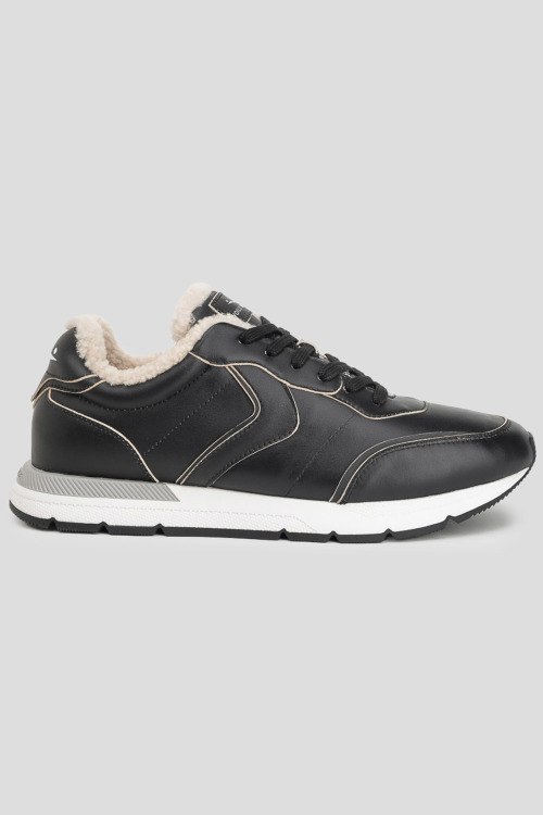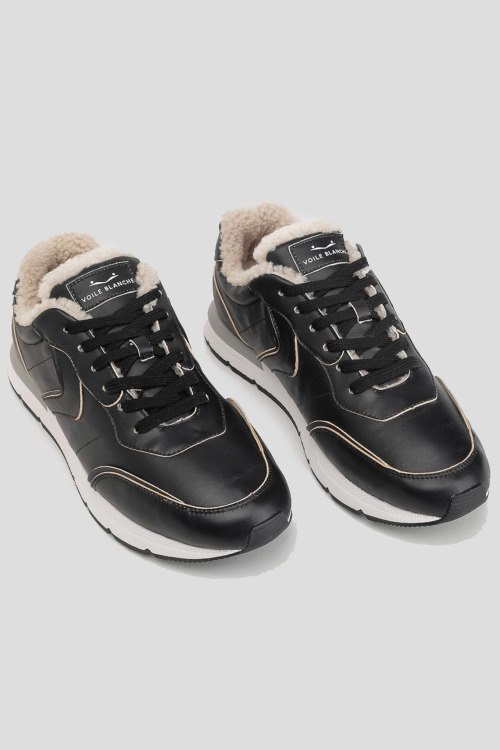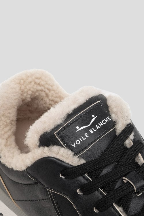 Детали: Мужские черные кожаные кроссовки на меху от Voile Blanche (Вуаль Бланш). Модель из гладкой кожи, логотип на язычке и на пятке, классическая шнуровка, закругленный носок, внутри на меху, белая подошва