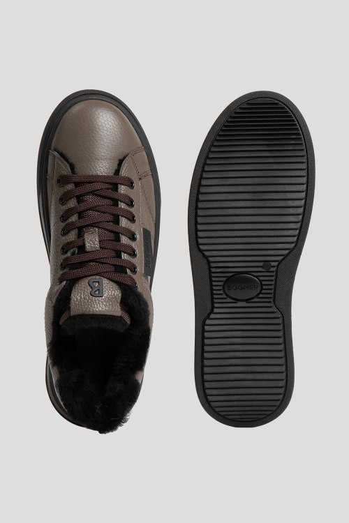 Детали: Мужские коричневые кожаные кеды на меху Milano от Bogner (Богнер). Модель из зернистой кожи, логотип сбоку и на язычке, классическая шнуровка, закругленный носок, внутри на меху