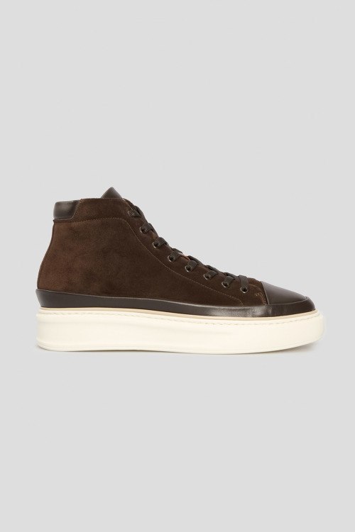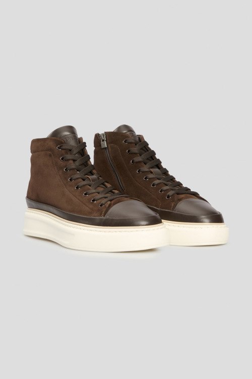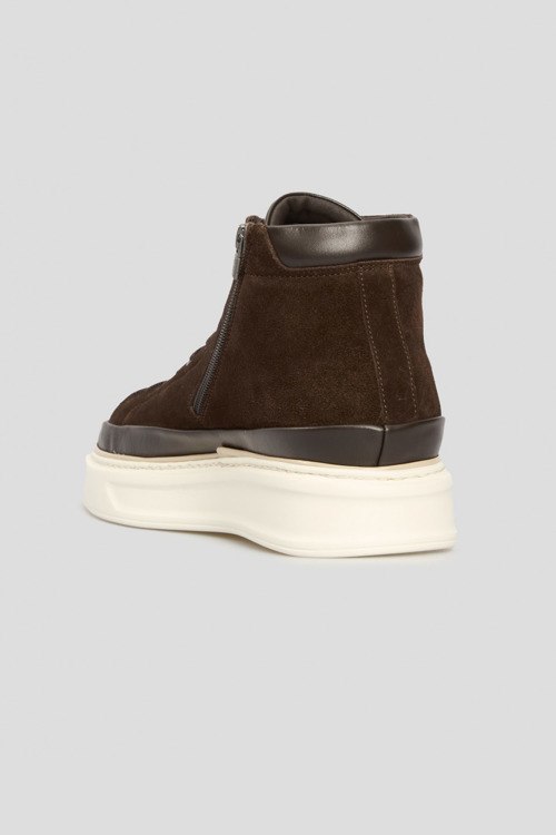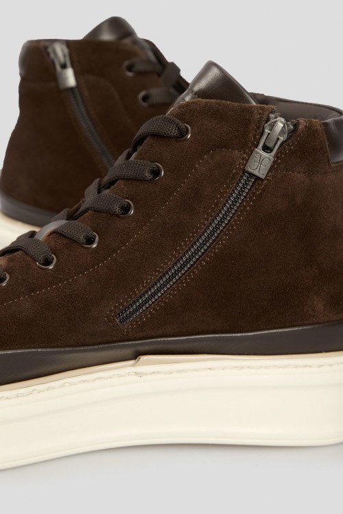 Детали: Мужские коричневые хайтопы из натуральной замши от Fabi (Фаби). Закругленный носок, сбоку застежка на молнию, резиновая подошва контрастного цвета, модель утепленная мехом