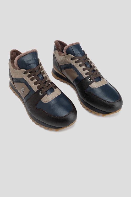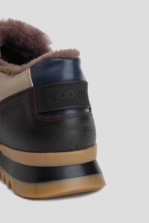 Детали: Мужские кроссовки Seattle из натуральной кожи от Bogner (Богнер). Комбинированный дизайн, закругленный носок, спереди шнуровка, патч-лого, рельефная подошва, модель утепленная мехом