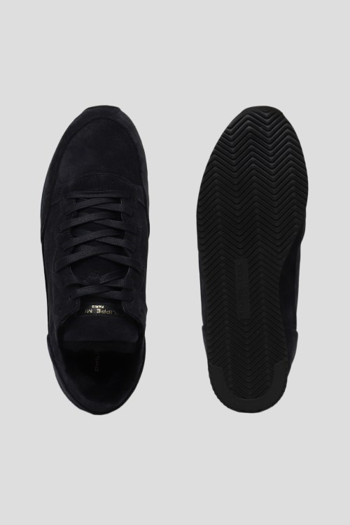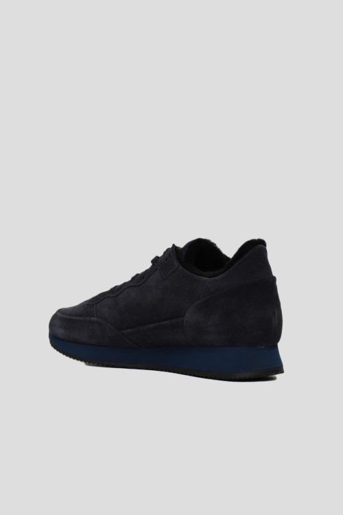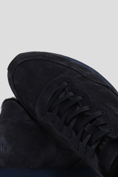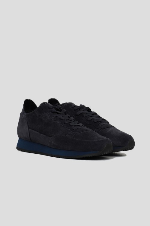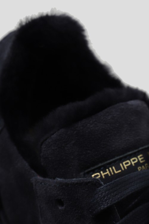 Детали: Мужские темно-синие кроссовки из замша от Philippe Model (Филипп Модел). Утепленная модель натуральным мехом, закругленный носок, классическая шнуровка, резиновая подошва, нашивка в логотипом бренда