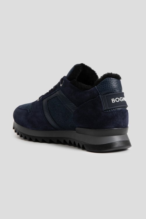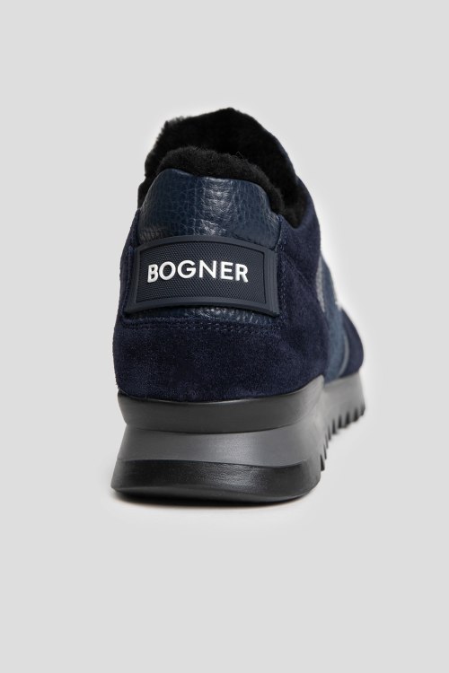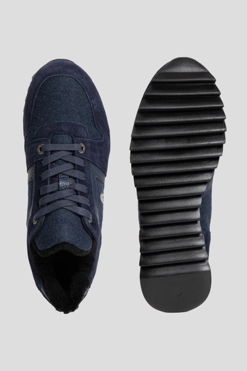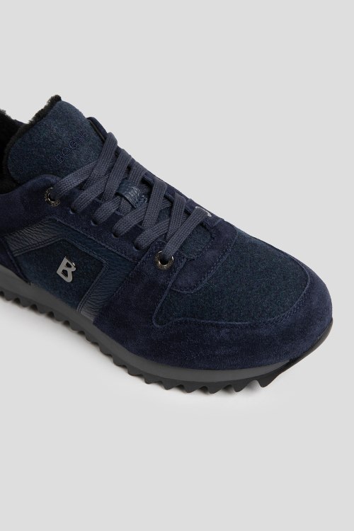 Детали: Мужские темно-синие кроссовки из шерсти и замши на меху Seattle 16 от Bogner (Богнер). Комбинация материалов, логотип сбоку, на язычке и на пятке, классическая шнуровка, закругленный носок, внутри на меху