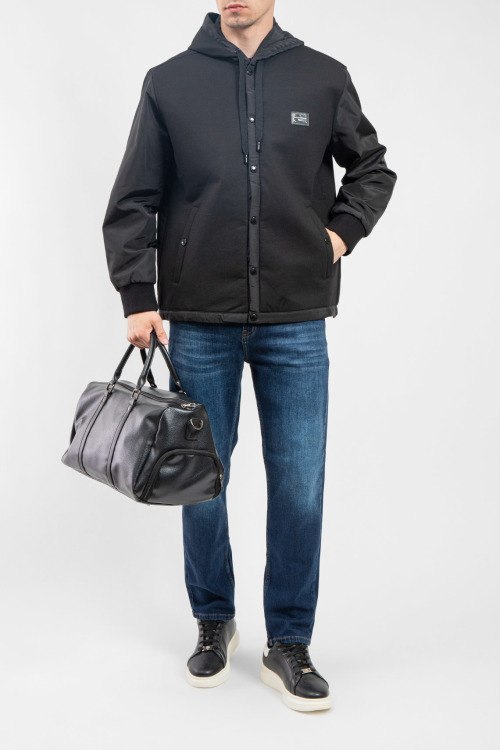 Мужская черная куртка от Dolce & Gabbana (Дольче энд Габбана). Капюшон на завязках, нашивка с логотипом на груди, боковые карманы на кнопке, застежка на кнопки, один внутренний карман, трикотажные манжеты, классическая длина.