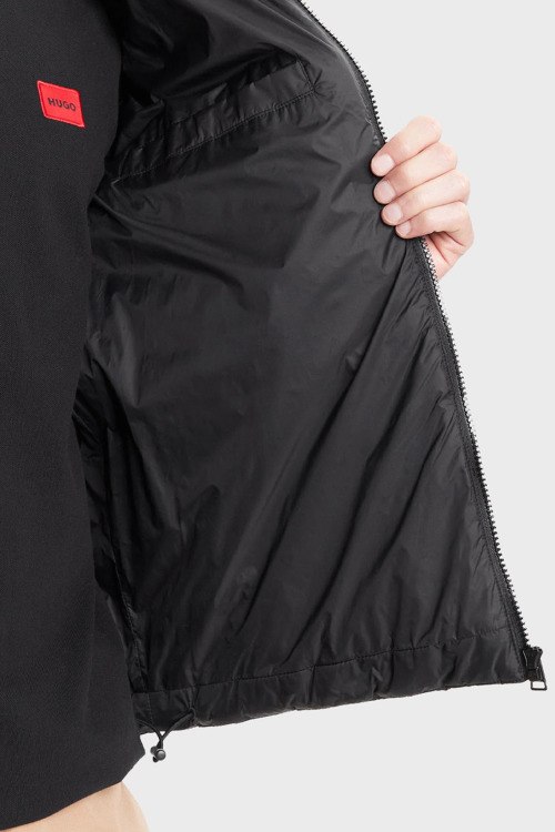 Детали: Мужская черная куртка Brenti от Hugo by Hugo Boss (Хуго бай Хуго Босс). Стеганый дизайн, высокий воротник, принт логотипа, боковые карманы, застежка-молния, классическая длина