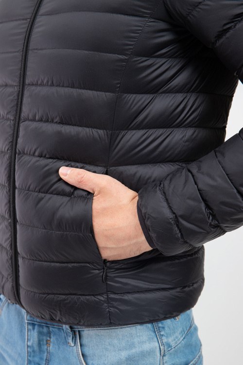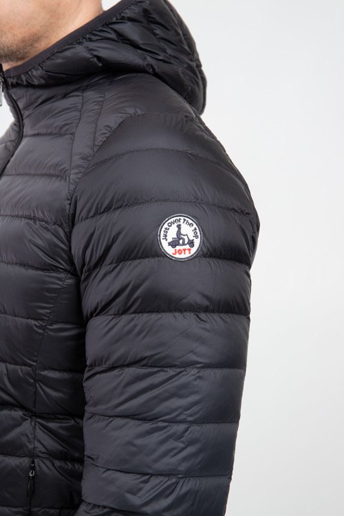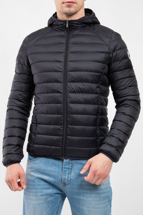 Детали: Мужская черная куртка на пуху от Jott (Йотт). Стеганый дизайн, вшитый капюшон, нашивка с логотипом на рукаве, боковые карманы на молнии, застежка-молния, классическая длина, наполнитель из микса пуха и пера