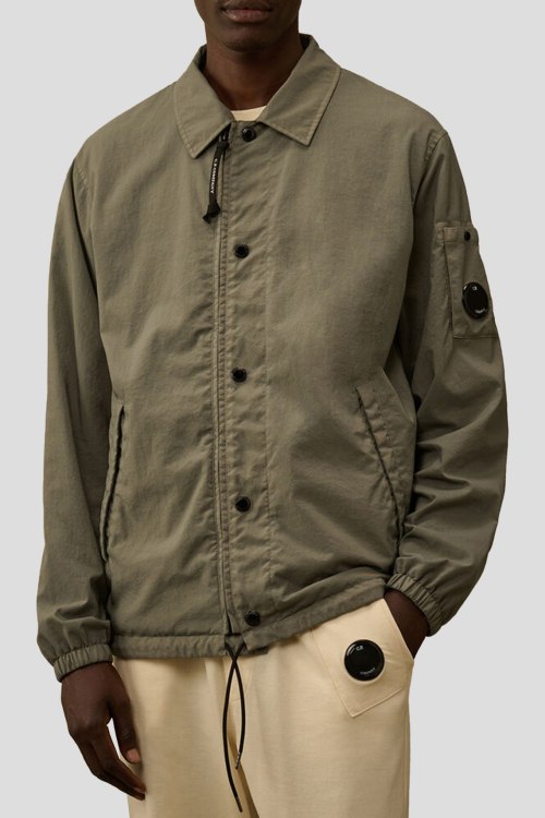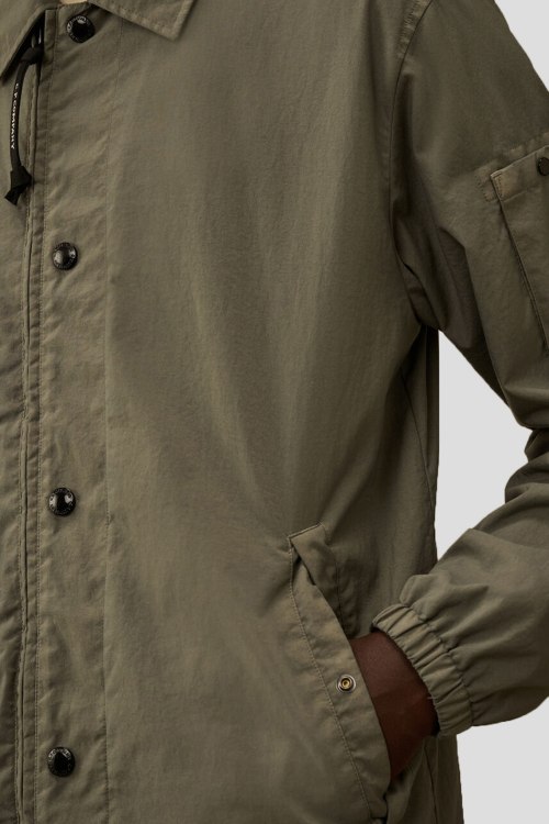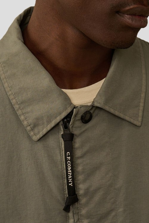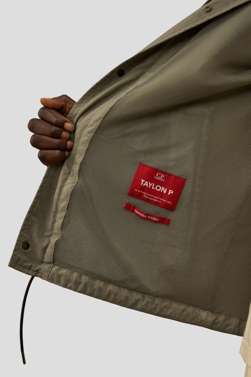 Детали: Мужская куртка в цвета светлый хаки из тяжелого нейлона Taylon P от C.P. Company (СиПи Компани). Модель из нейлона обработанного методом воздушного текстурирования для шерстяного вида. Отложной воротник, логотип на рукаве, боковые карманы, застежка на молнию и кнопки, манжеты на резинке, нижний край на завязках, классическая длина