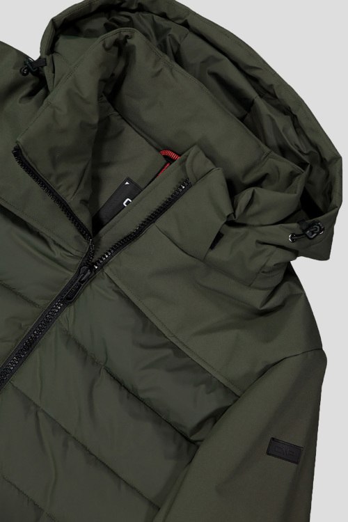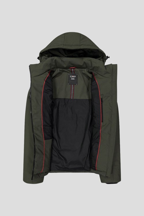 Детали: Мужская темно-зеленая утепленная куртка от CMP (СМП). Модель с подкладкой Feel Warm Flat и Flock, синтетическими волокнами, которые сохраняют тепло и защищают тело даже в холодную и влажную погоду. Мембрана Clima Protect делает одежду водонепроницаемой, сохраняя при этом высокую воздухопроницаемость, а внешняя обработка придает ткани водоотталкивающие свойства. Особенности включают в себя съемный капюшон, два боковых кармана, регулируемый подол и переднюю молнию с ветрозащитным клапаном
