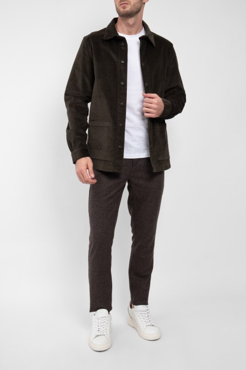 Мужская темно-коричневая вельветовая куртка от Les Deux (Лес Дюкс). Отложной воротник, два накладных кармана, застежка на пуговицы, манжеты на пуговицах, классическая длина.