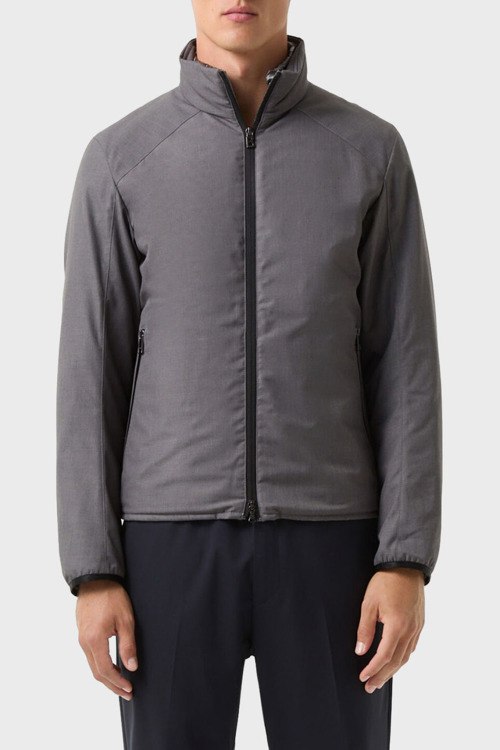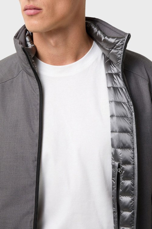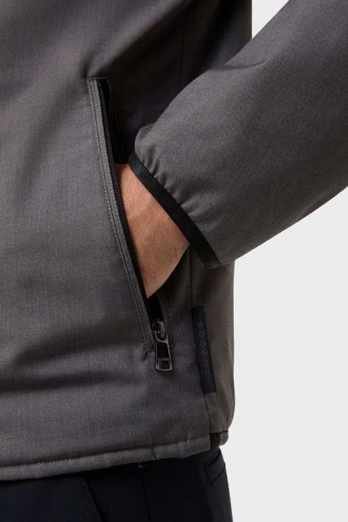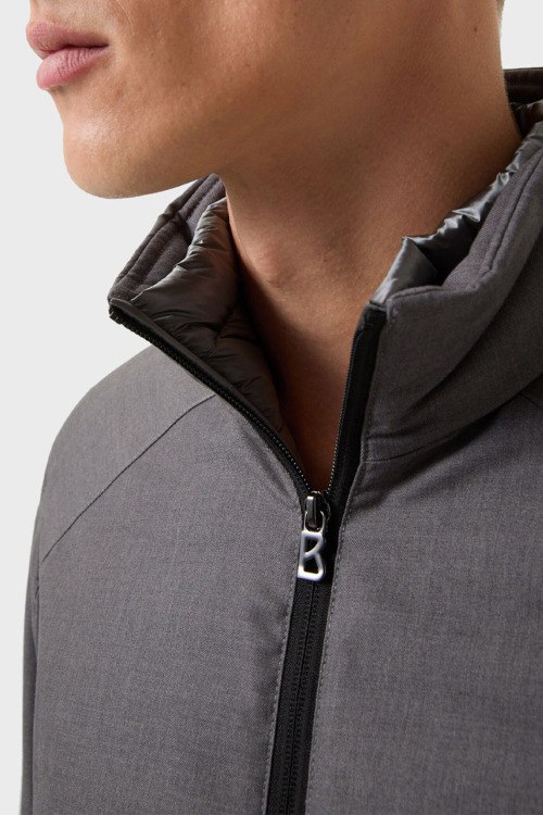 Детали: Мужская серая куртка на пуху Conno от Bogner (Богнер). Высокий воротник, нашивка с логотипом на рукаве, боковые карманы на молнии, застежка-молния, стеганая подкладка, пуховый наполнитель