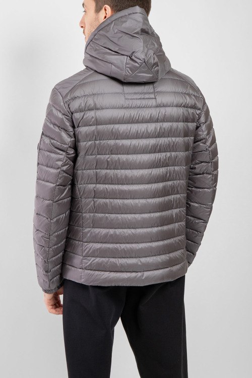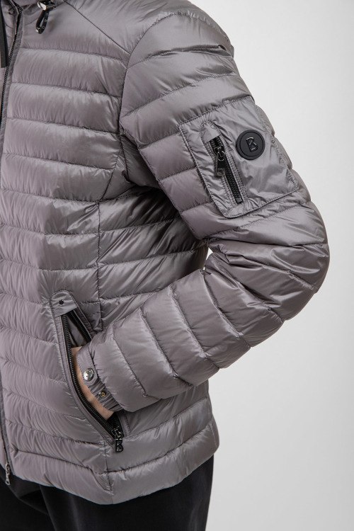 Мужская серая куртка из полиамида от Bogner (Богнер). Стеганый дизайн, вшитый капюшон, застежка на молнию, прорезные карманы на молнии, дополнительный карман на рукаве, патч-лого, модель утепленная утиным пухом.