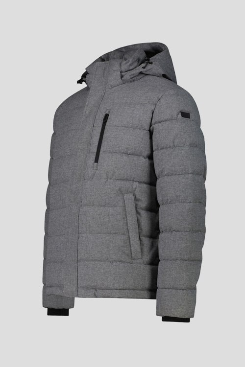 Детали: Мужская серая куртка от CMP (СМП). Стеганая модель из меланжевой ткани с наполнителем Sorona® сочетает в себе легкость, тепло, воздухопроницаемость и изысканный вид. Водонепроницаемая мембрана защищает от небольшого дождя и брызг, а съемный капюшон позволяет легко трансформировать городской образ в полноценную защиту при изменении погоды. Застежк ана молнию и кнопку, прорезные карманы на молнии, логотип бренда