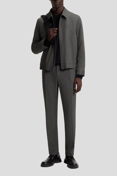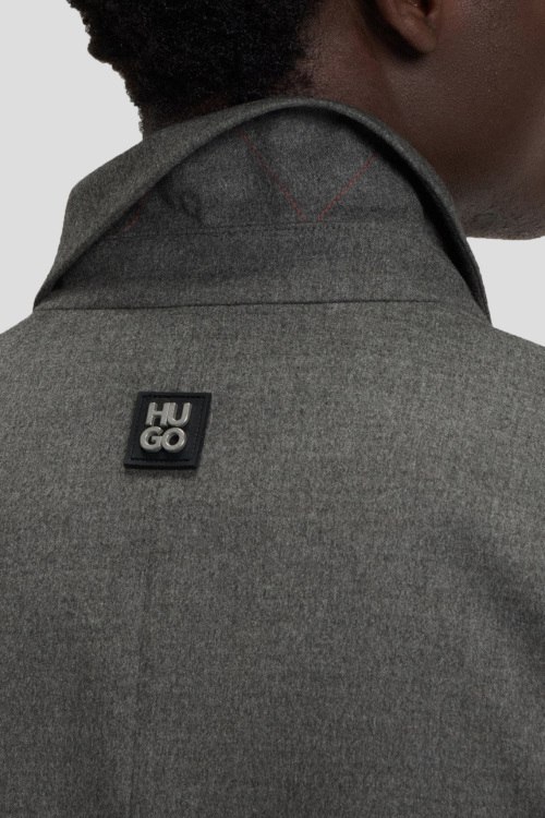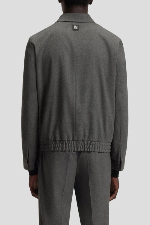 Детали: Мужская серая куртка Hellys из эластичной фланели от Hugo by Hugo Boss (Хуго бай Хуго Босс). Отложной воротник, нашивка логотипа на спине, боковые карманы, застежка-молния, нижний край на резинке, классическая длина
