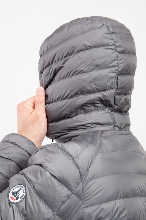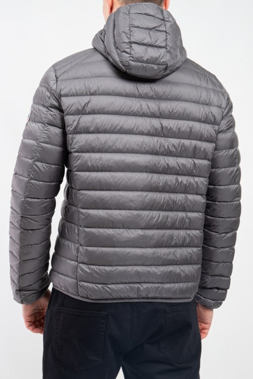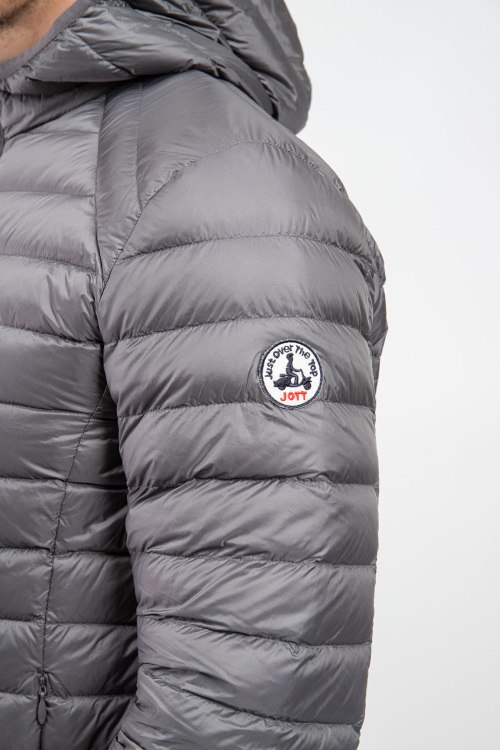 Детали: Мужская серая куртка на пуху от Jott (Йотт). Стеганый дизайн, вшитый капюшон, нашивка с логотипом на рукаве, боковые карманы на молнии, застежка-молния, классическая длина, наполнитель из микса пуха и пера