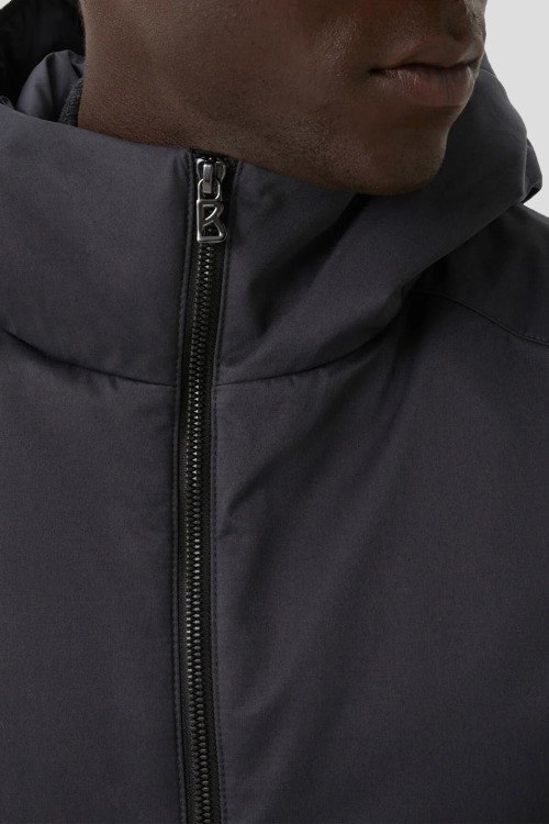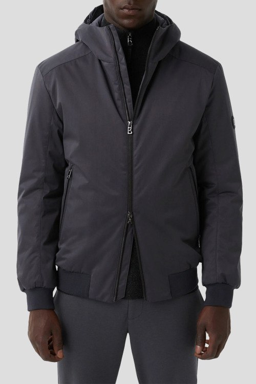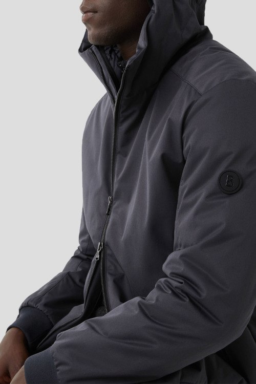 Детали: Мужская темно-серая куртка Vick от Bogner (Богнер). Вшитый капюшон, нашивка с логотипом на рукаве, боковые карманы на молнии, застежка-молния, классическая длина, трикотажные манжеты и нижний край