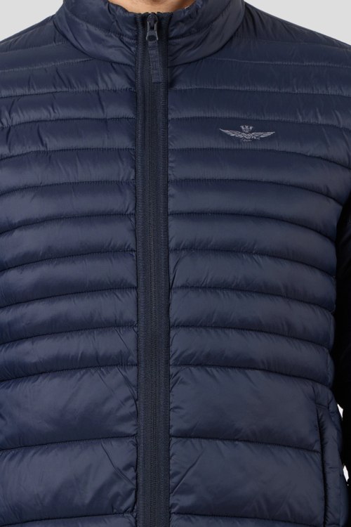 Детали: Мужская темно-синяя утепленная куртка от Aeronautica Militare (Аэронавтика Милитари). Стеганый дизайн, высокий воротник, логотип на груди, боковые карманы, застежка-молния, классическая длина, синтетический утеплитель