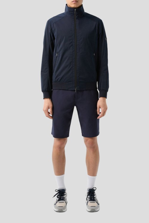 Детали: Мужская темно-синяя хлопковая куртка Jonas от Bogner (Богнер). Воротник-стойка, нашивка с логотипом на рукаве, боковые карманы на молнии, застежка-молния, классическая длина, трикотажные манжеты и нижний край