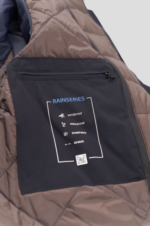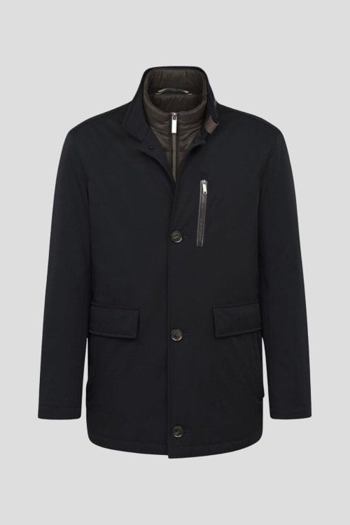 Мужская темно-синяя куртка из полиамида и эластана от Bugatti (Бугатти). Застежка на молнию и пуговицы, высокий воротник-стойка, карманы с клапаном, нагрудный карман на молнии, стеганая подкладка