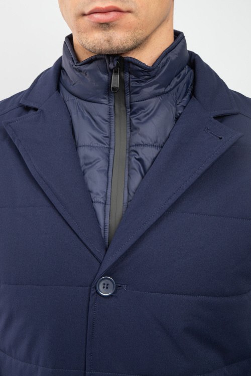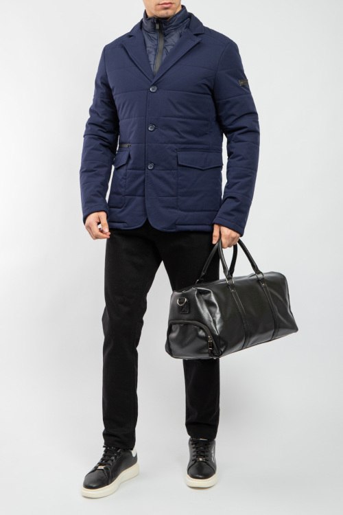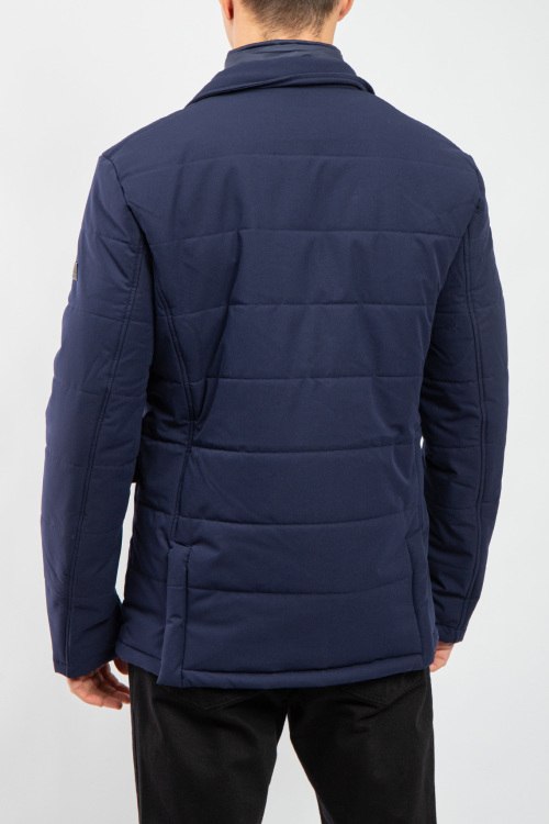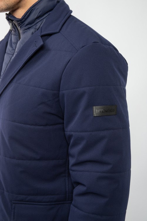 Мужская темно-синяя утепленная куртка от Bikkembergs (Биккембергс). Стеганый дизайн, отложной воротник, съемная вставка, накладные карманы, застежка на три пуговицы, удлиненная длина.