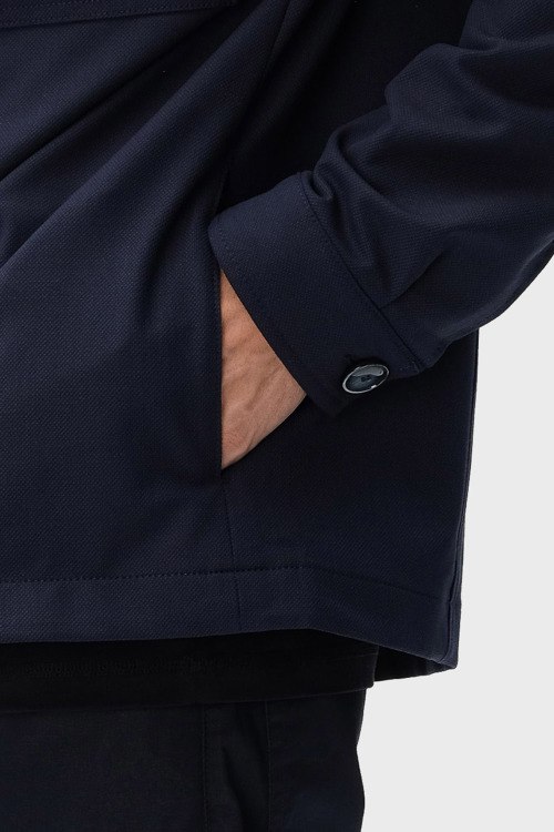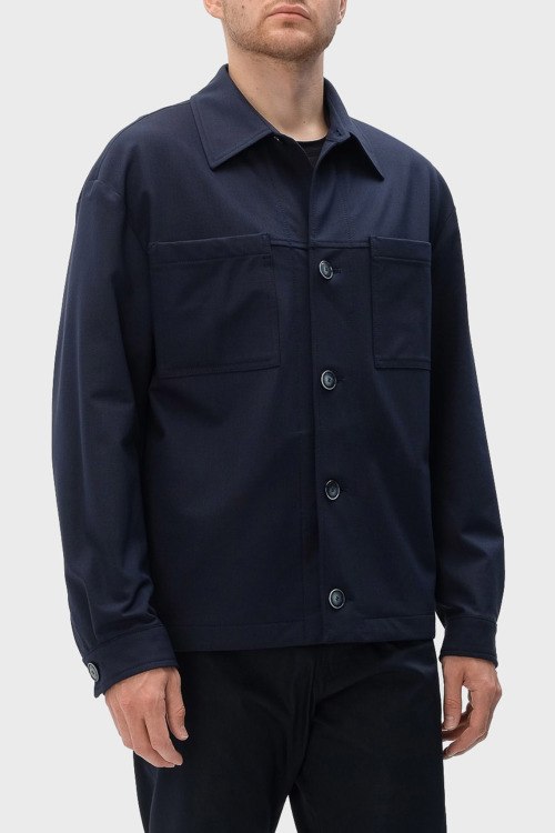 Детали: Мужская темно-синяя куртка-рубашка из шерсти и вискозы P-Craig от Hugo Boss (Хуго Босс). Отложной воротник, два кармана на груди, два боковых кармана, застежка на пуговицы, классическая длина