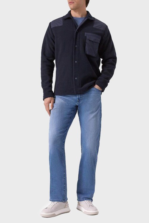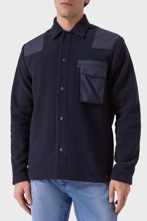 Детали: Мужская темно-синяя флисовая куртка-рубашка от Paul & Shark (Пол энд Шарк). Отложной воротник, карман на груди, застежка на кнопки, классическая длина