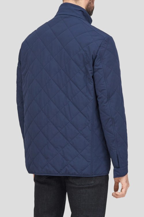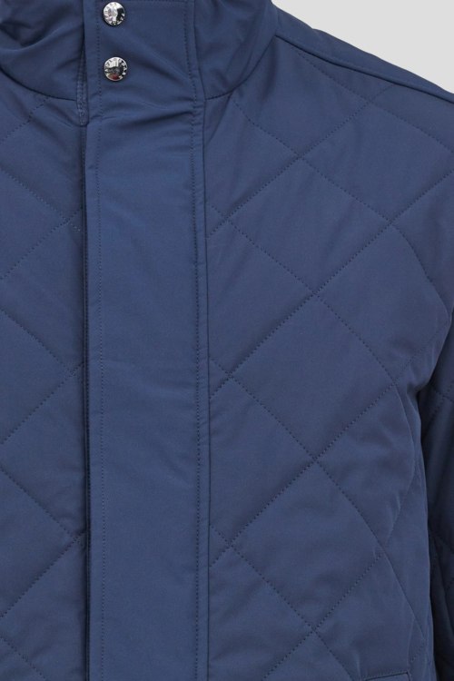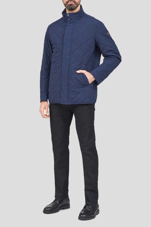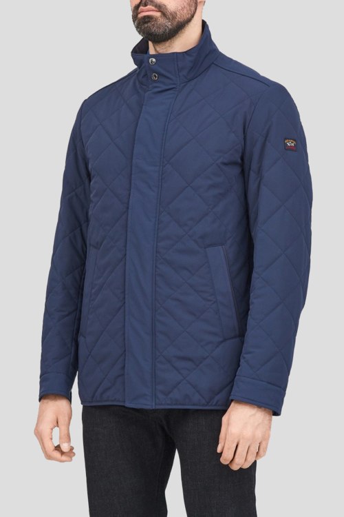 Детали: Мужская темно-синяя куртка от Paul & Shark (Пол энд Шарк). Стеганый дизайн, выоский воротник, нашивка с логотипом на рукаве, боковые карманы, застежка на молнию и кнопки, удлиненная длина