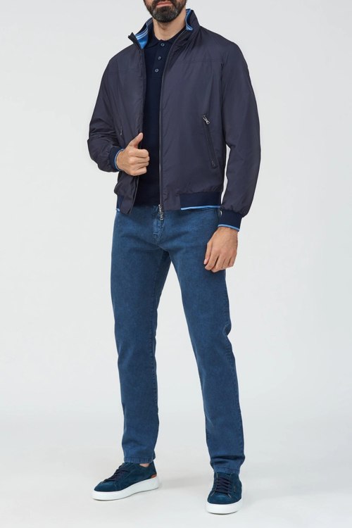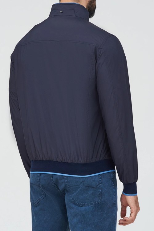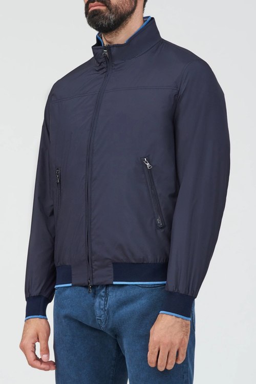 Детали: Мужская темно-синяя куртка из полиэстера от Paul & Shark (Пол энд Шарк). Высокий воротник, боковые карманы на молнии, застежка-молния, классическая длина, трикотажные манжеты и нижний край