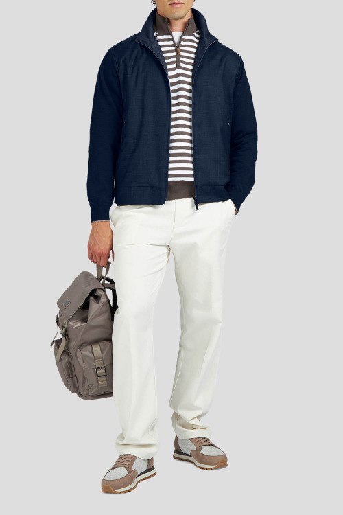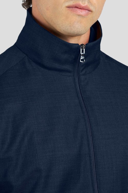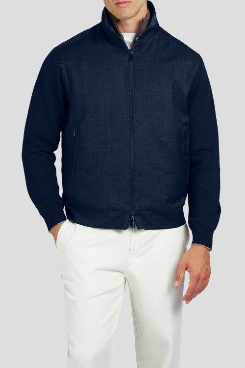 Детали: Мужская темно-синяя шерстяная куртка от Paul & Shark (Пол энд Шарк). Высокий воротник, боковые карманы на молнии, застежка-молния, трикотажные манжеты, классическая длина