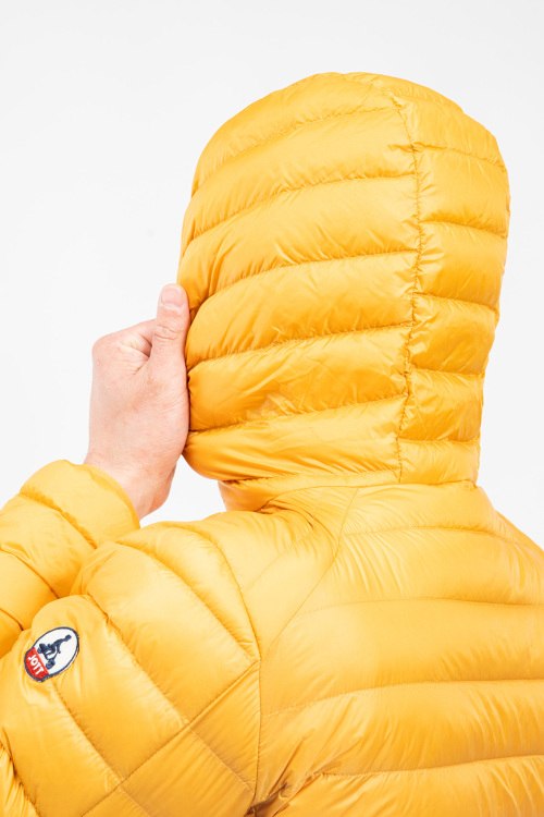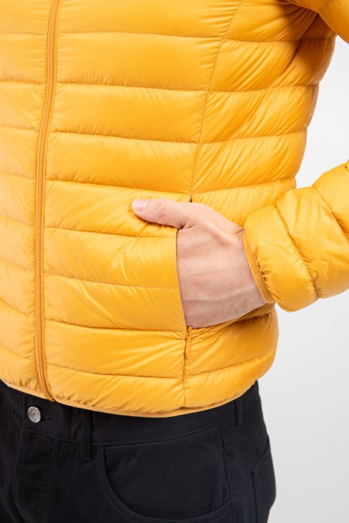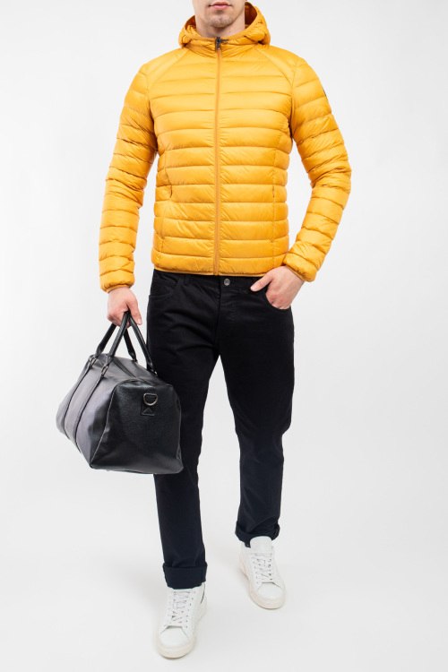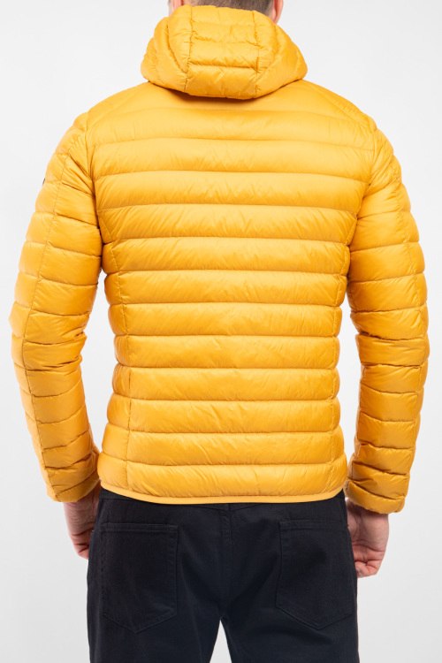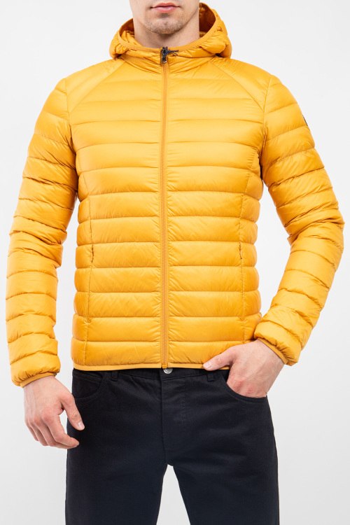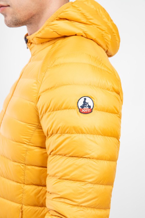 Детали: Мужская желтая куртка на пуху от Jott (Йотт). Стеганый дизайн, вшитый капюшон, нашивка с логотипом на рукаве, боковые карманы на молнии, застежка-молния, классическая длина, наполнитель из микса пуха и пера
