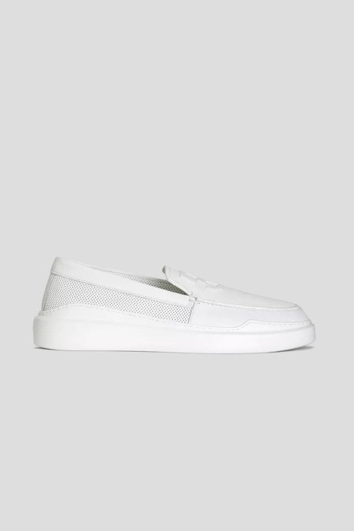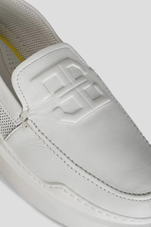 Детали: Мужские белые лоферы из натуральной кожи от Fabi (Фаби). Закругленный носок, плоская подошва, перфорация, спереди фактурный логотип