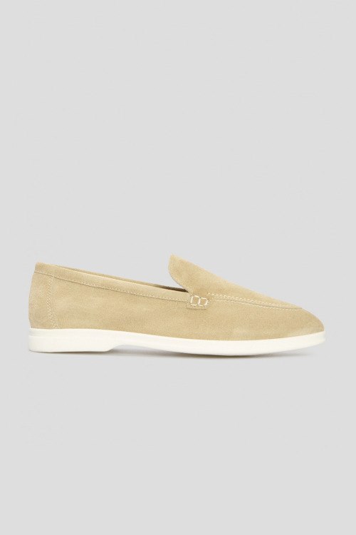 Детали: Мужские бежевые лоферы из натуральной замши от Barba Napoli (Барба Наполи). Миндалевидный носок, светлая подошва, кожаная стелька с логотипом